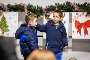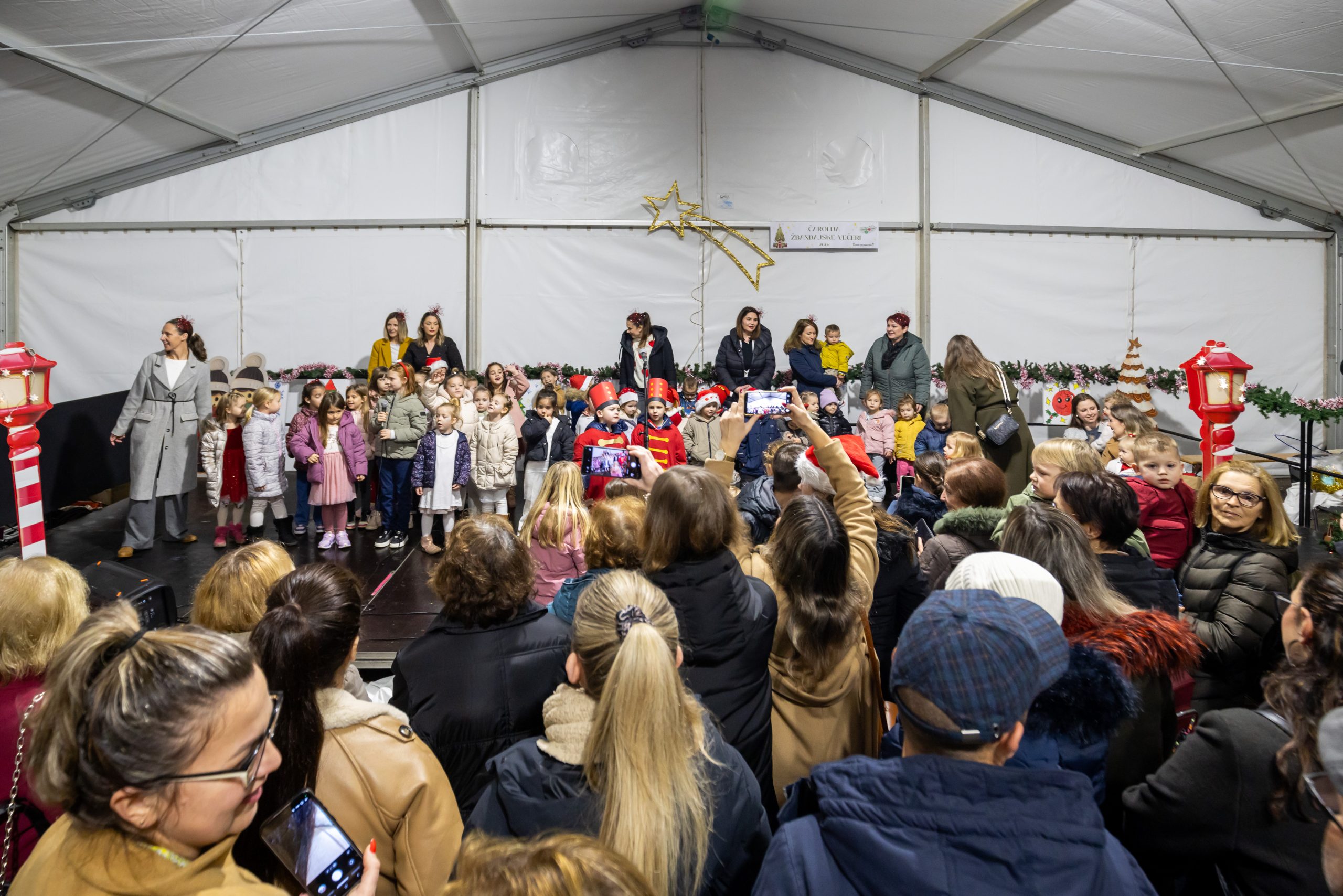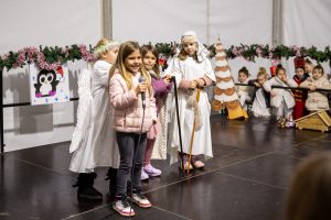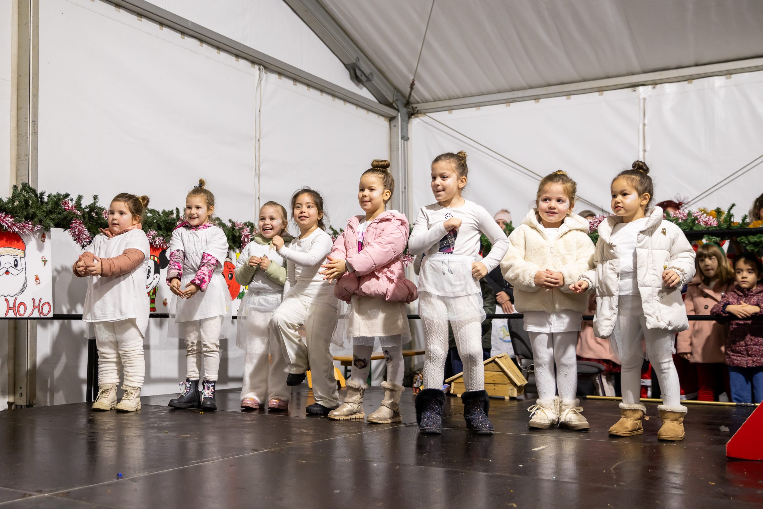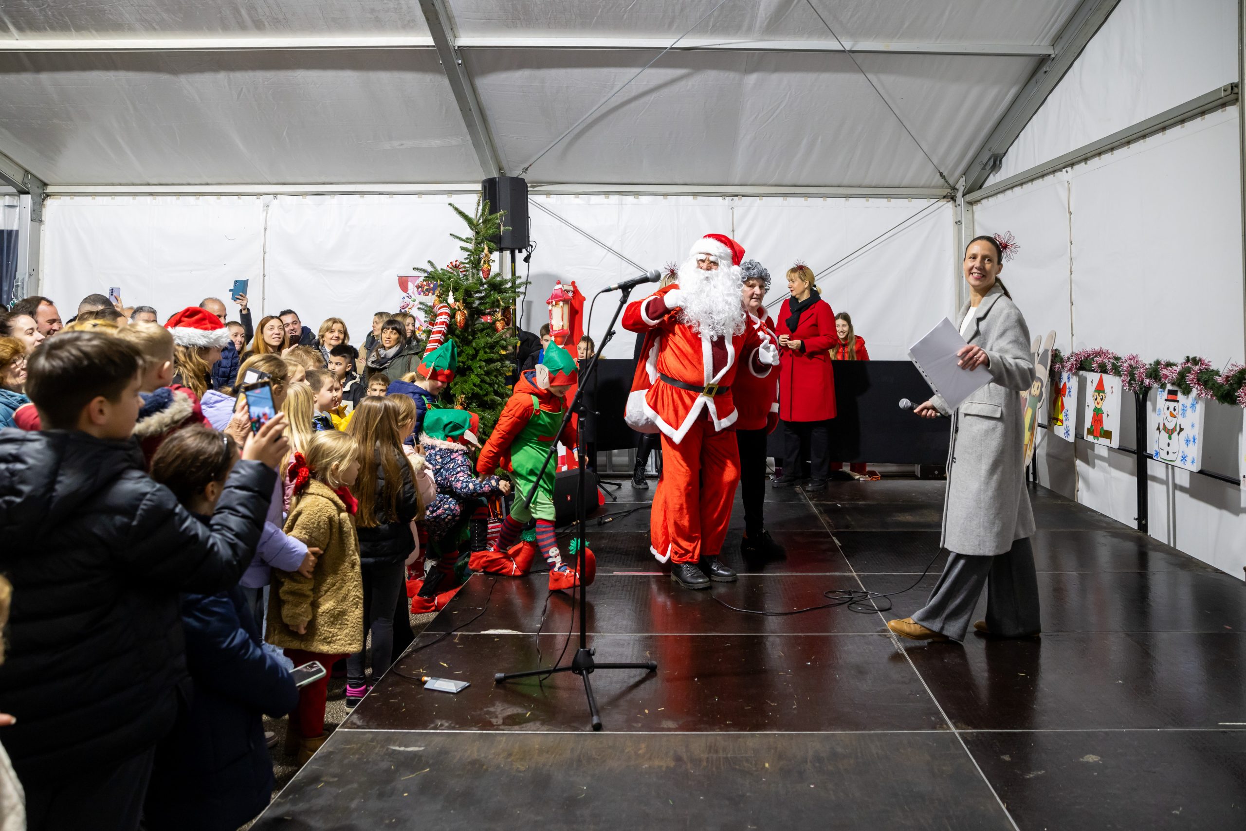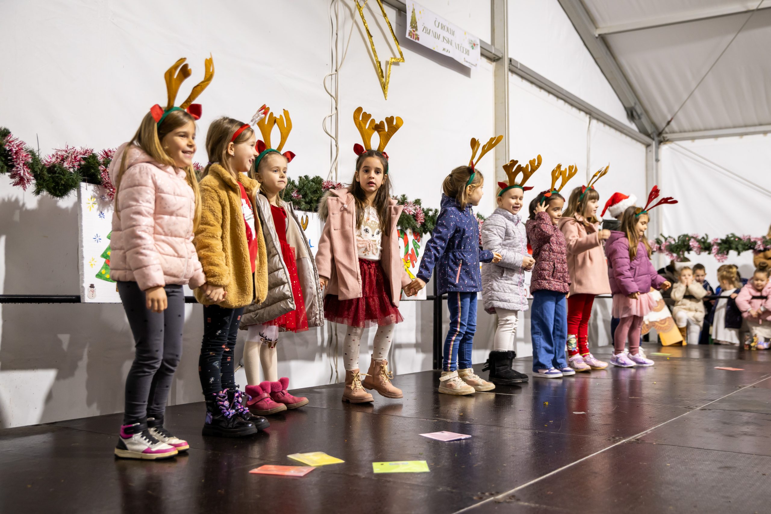 Krenuli su nastupi mališana – najmlađi vrtićarci Lavići ponosno su predstavili svoj ples „Djed Mraz stiže u naš grad“.