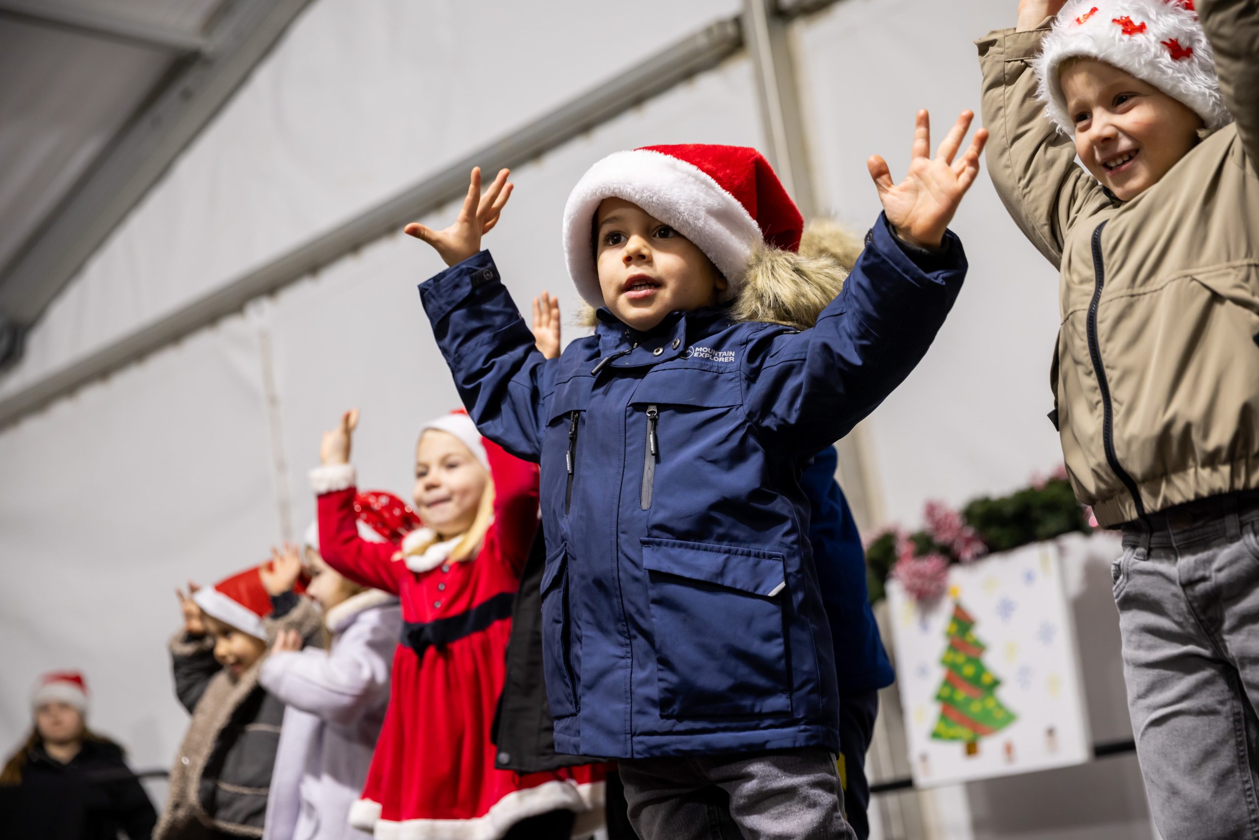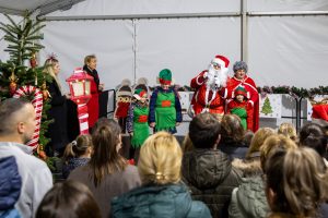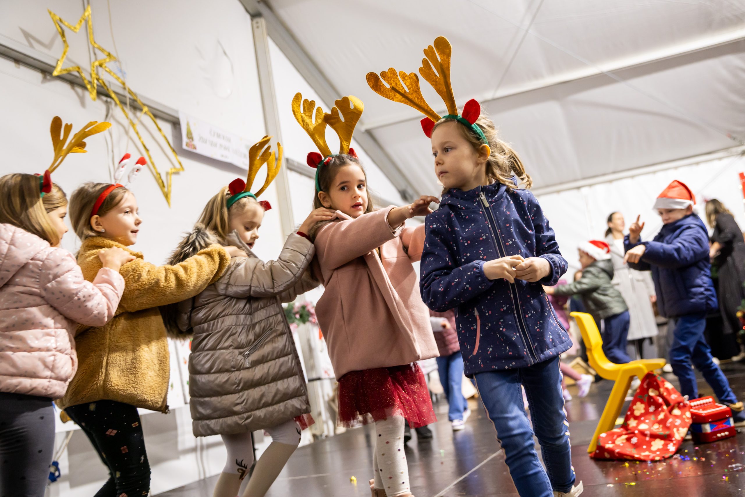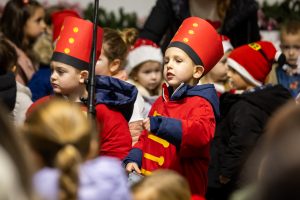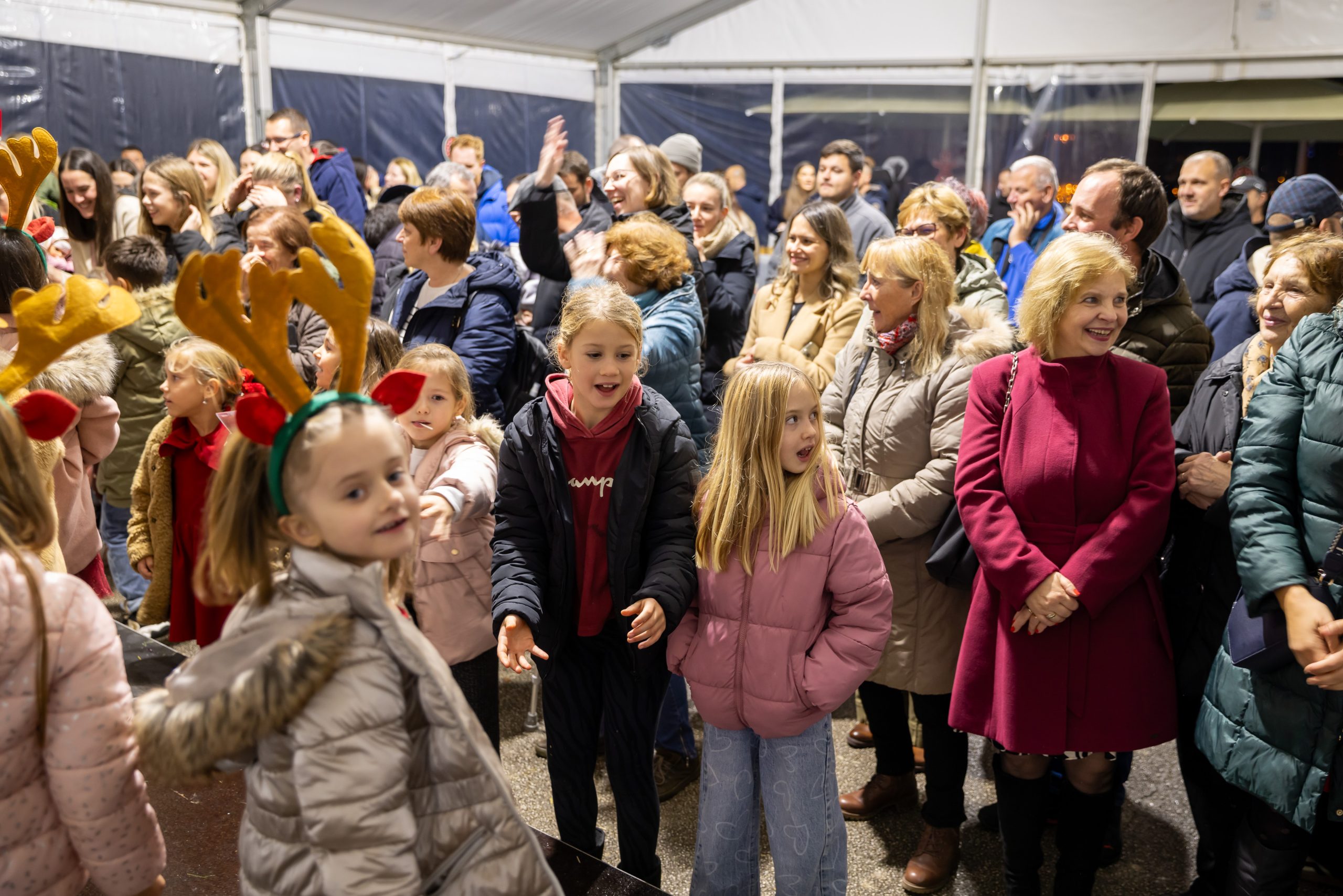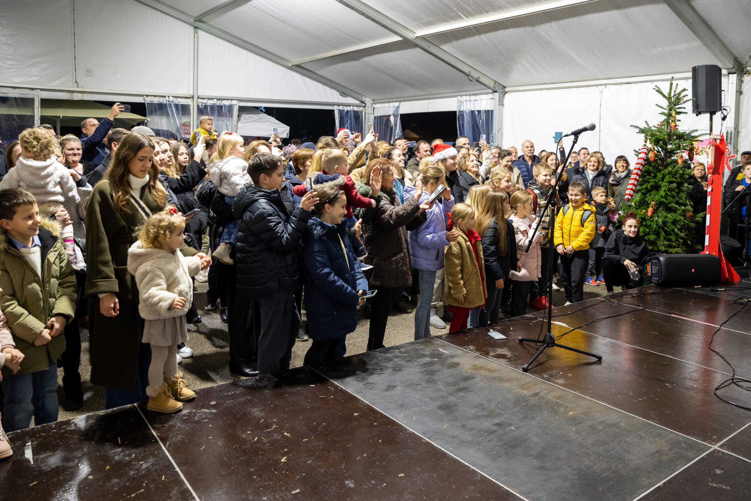 Krenuli su nastupi mališana – najmlađi vrtićarci Lavići ponosno su predstavili svoj ples „Djed Mraz stiže u naš grad“.